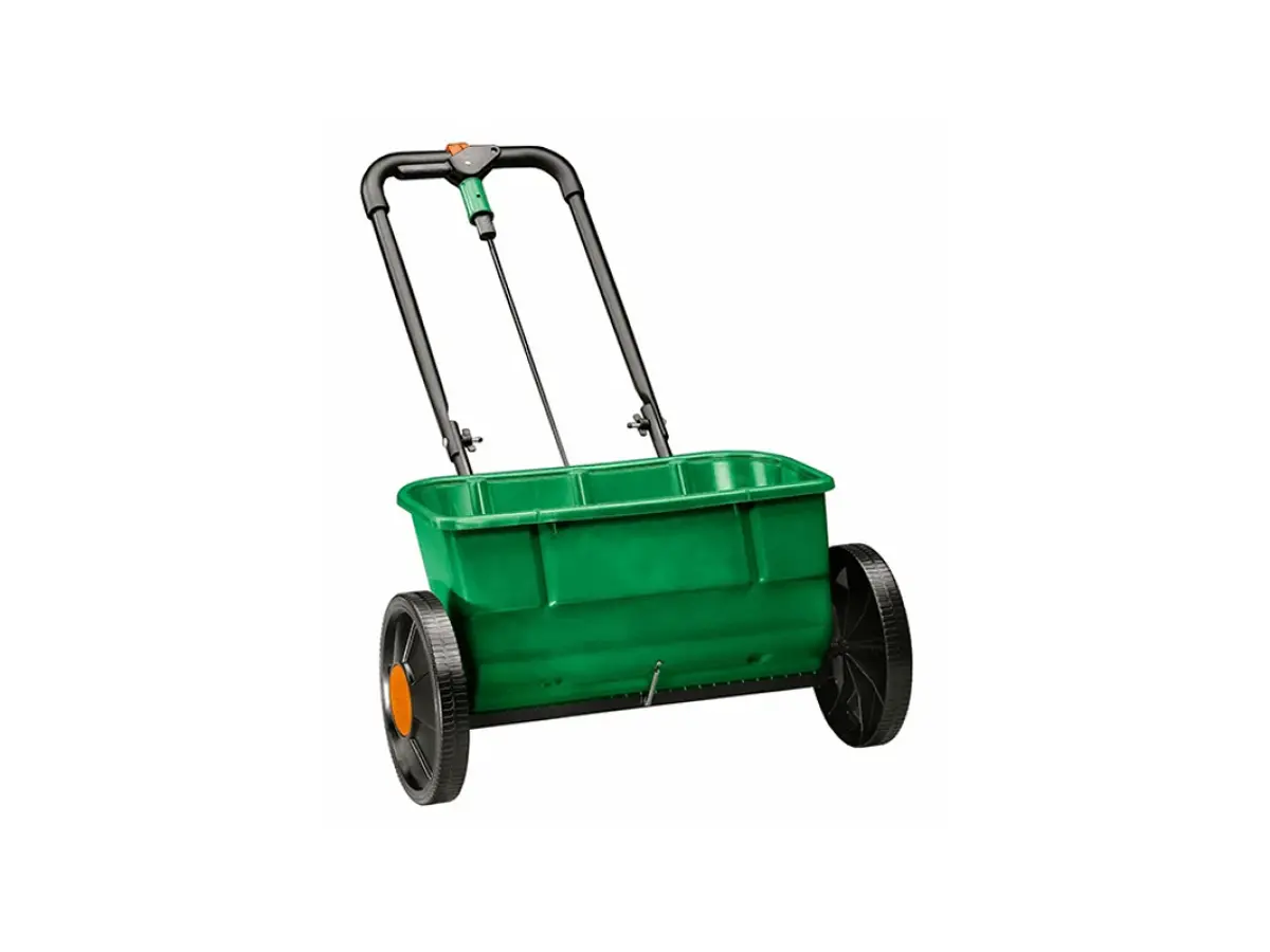 - Grazie all’ampiezza di spargimento di 0,55 m e una capacità di tramoggia di 30 litri, è il carrello applicatore ideale per giardini fino a 1000 m2