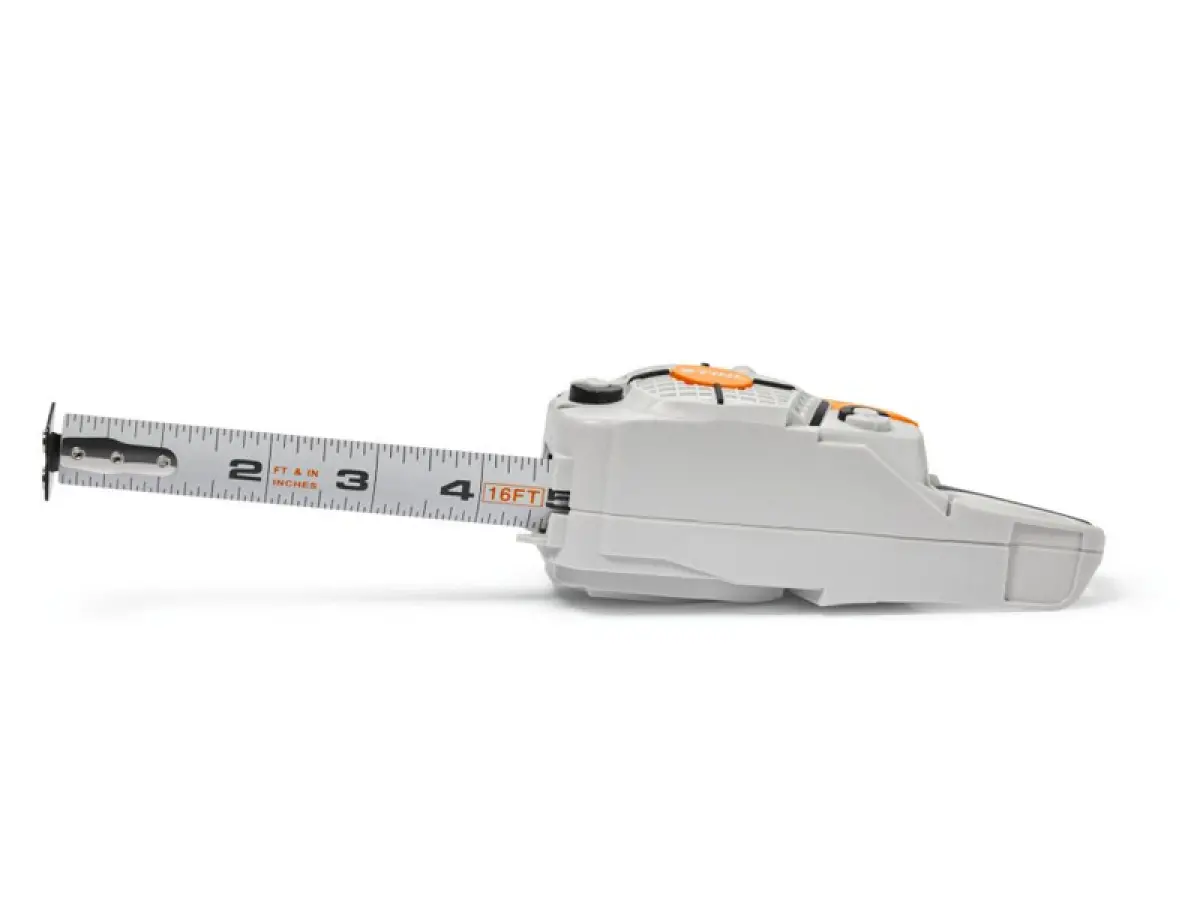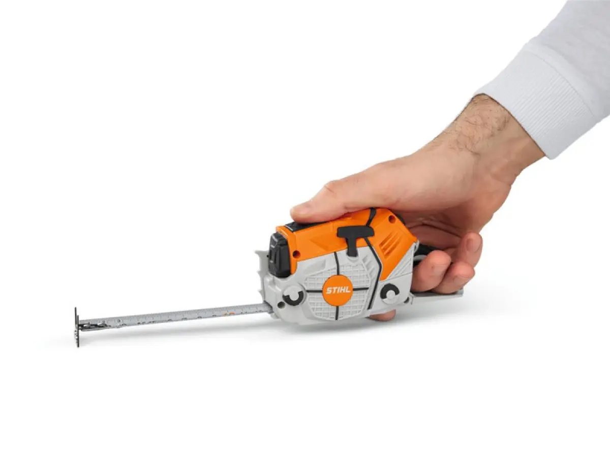 - Questo caratteristico metro a nastro lungo 5 metri, progettato nello stile di una motosega STIHL, è un must-have in ogni cassetta degli attrezzi