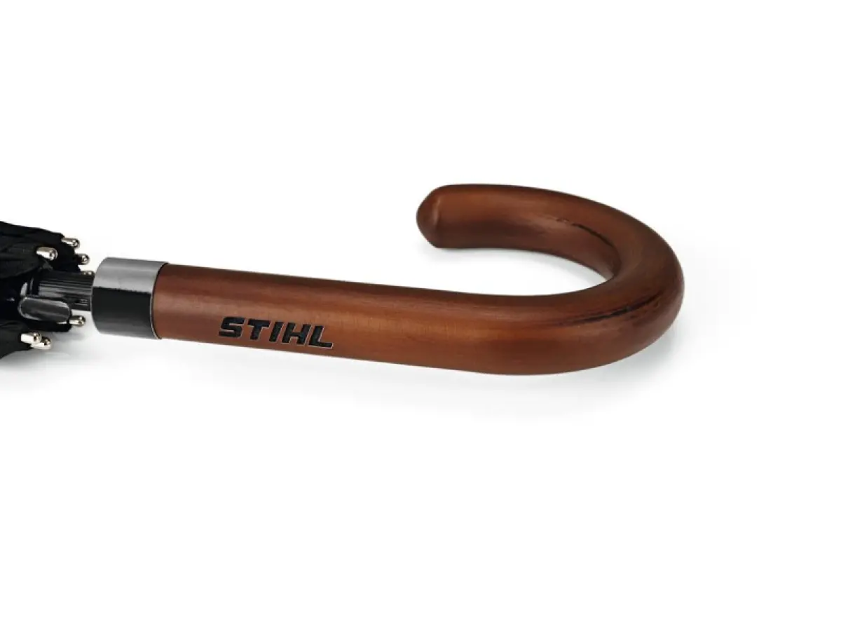 - Con asta e stecche in fibra di vetro. Credete davvero che sia un ombrello come tutti gli altri? Oltre ai due segmenti con stemma STIHL, l’ombrello presenta due segmenti con tecnologia Wet Print