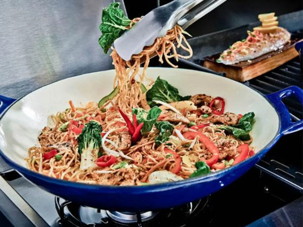 - Funzionalità: la ghisa pesante porcellanata rende il wok ideale per tutte le cotture in cui è necessaria una distribuzione del calore ottimale, es. risotti, polenta, marmellate e pasta risottata