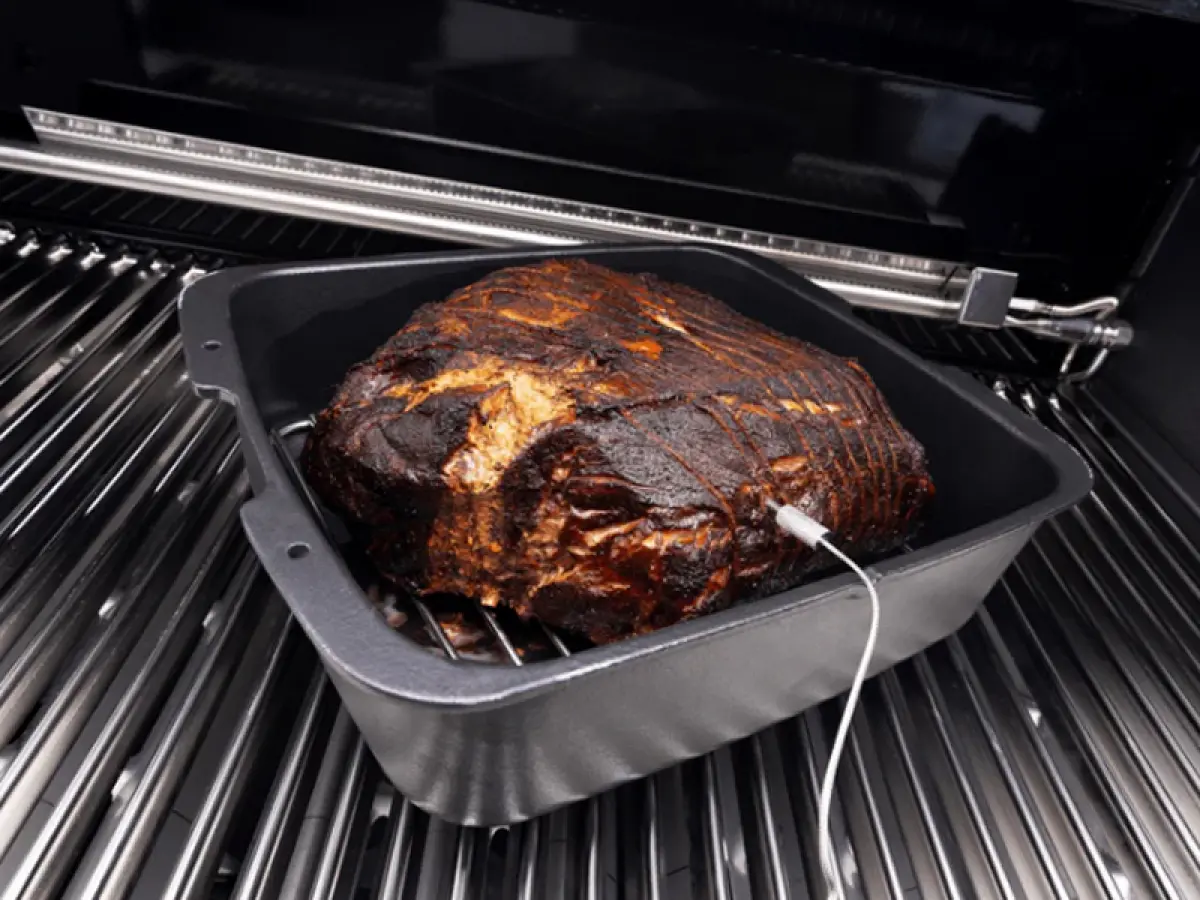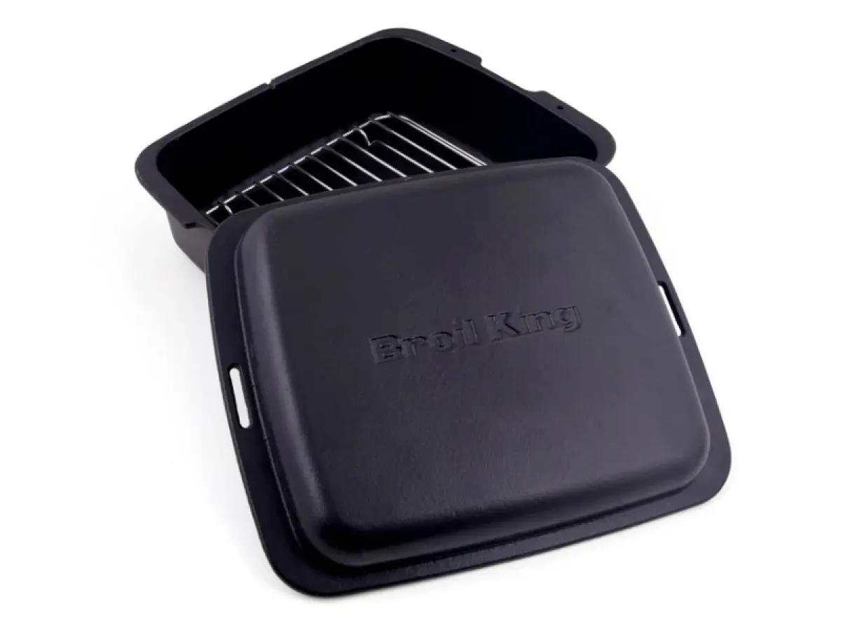 - Funzionalità: Il peso del coperchio permette di mantenere l'umidità all'interno del contenitore. Sul fondo è presente una griglia in acciaio, fondamentale per mantenere il cibo elevato e non a contatto con i grassi di cottura. Ideale per le cotture di carni con tempi lunghi a bassa temperatura
