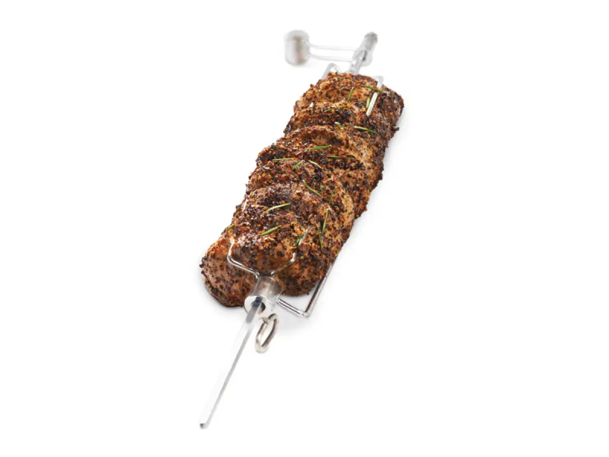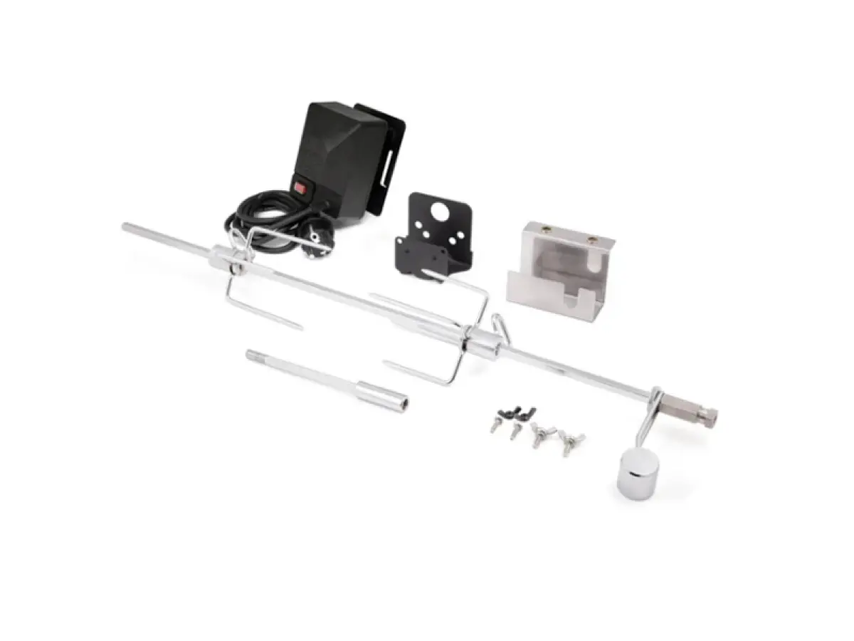 - Kit girarrosto per Broil King® PelletSmoker, comprensivo di motore elettrico, asta, contrappeso, forcelle, staffa, viti e dadi