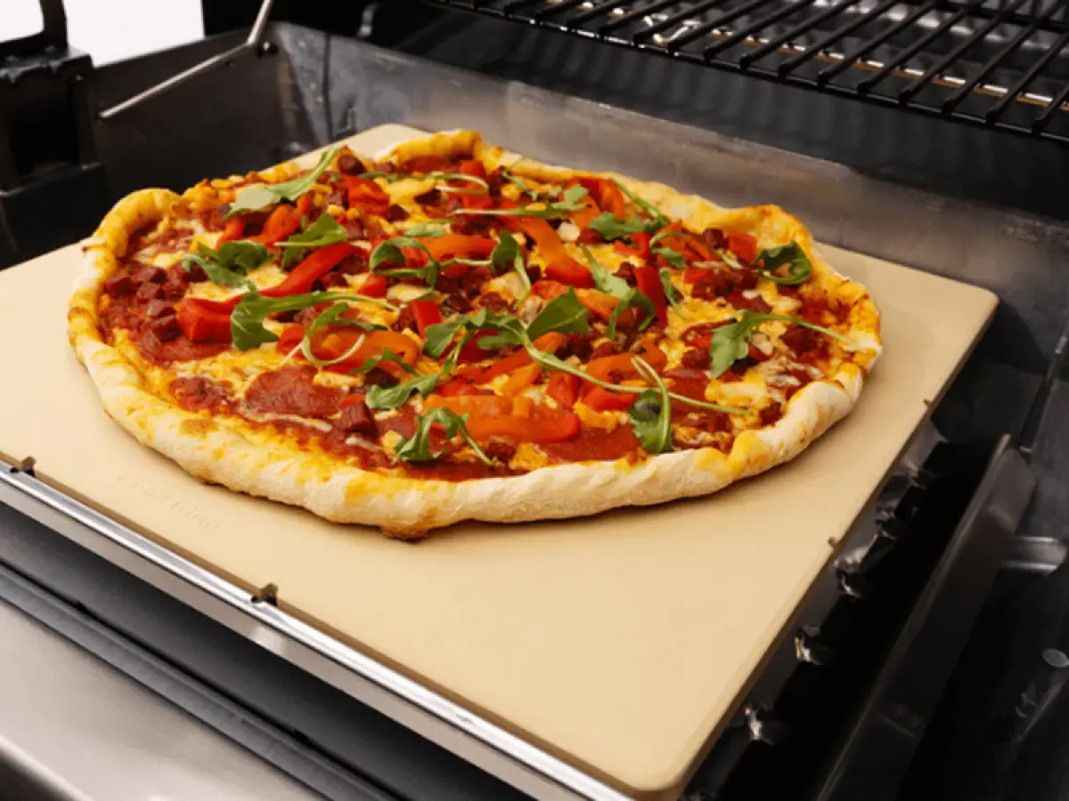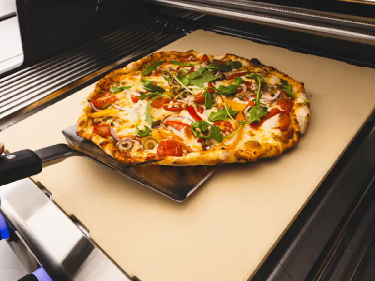 Pietra reversibile con buona ritenzione del calore per grigliare le pizze in modo facile e veloce.