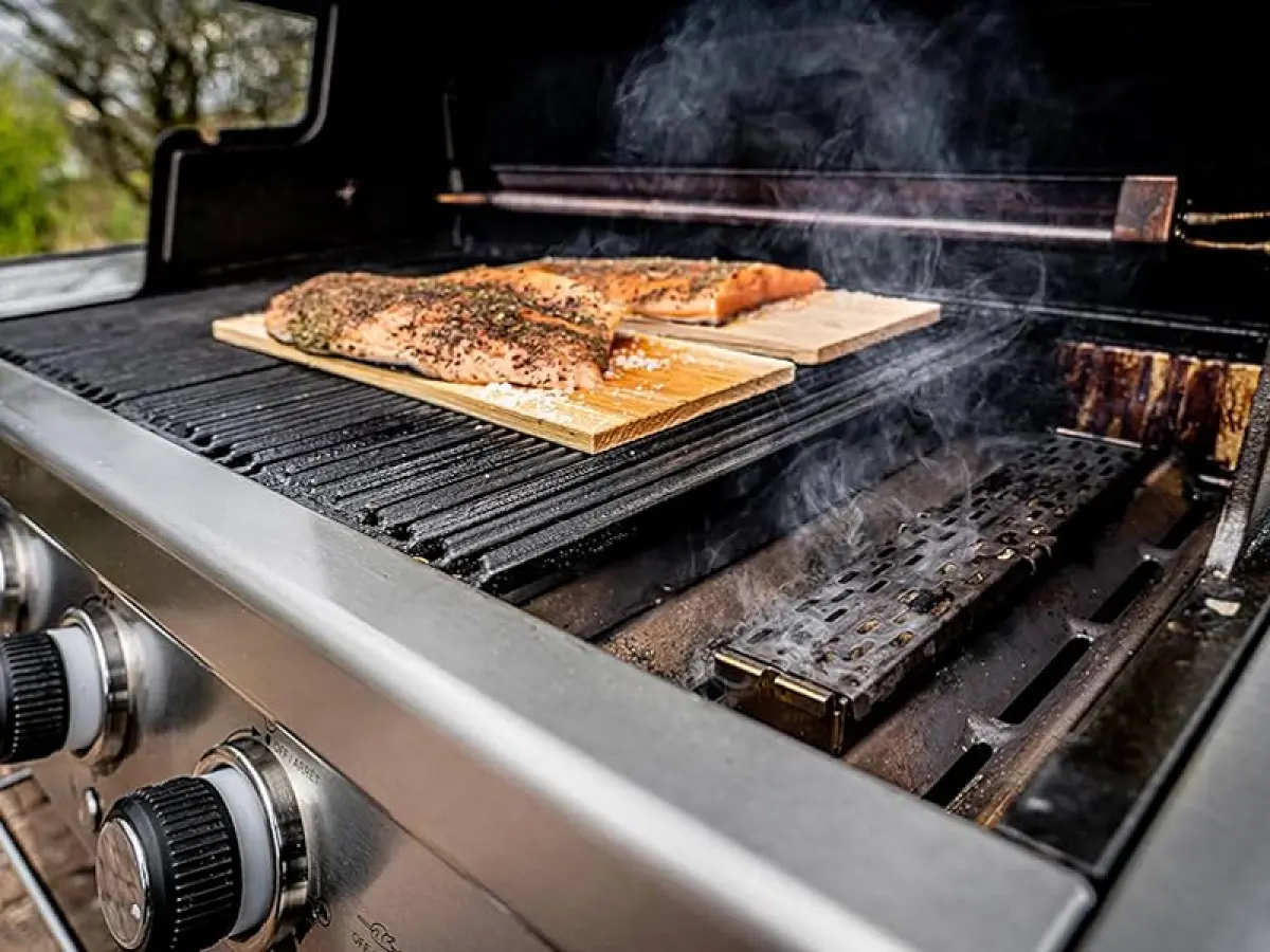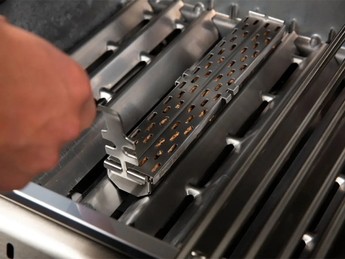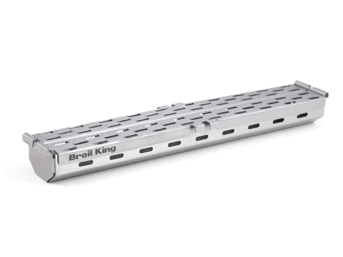 - Scatola per affumicatura in acciaio inox con coperchio apribile e fori di dimensioni fisse utilizzabile con attrezzo sollevagriglie