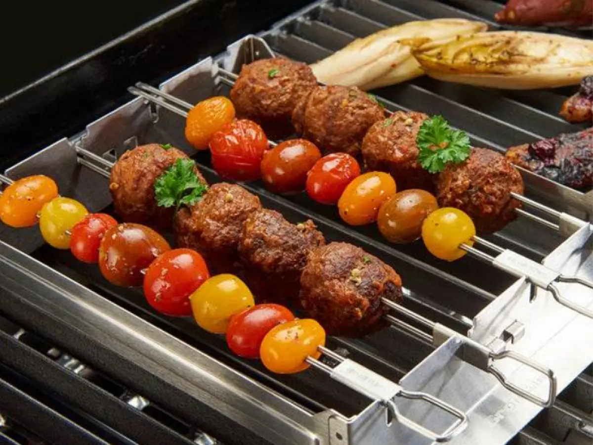 - Funzionalità: supporto dotato di 4 spiedini a doppia asta orientabili a doppia posizione
