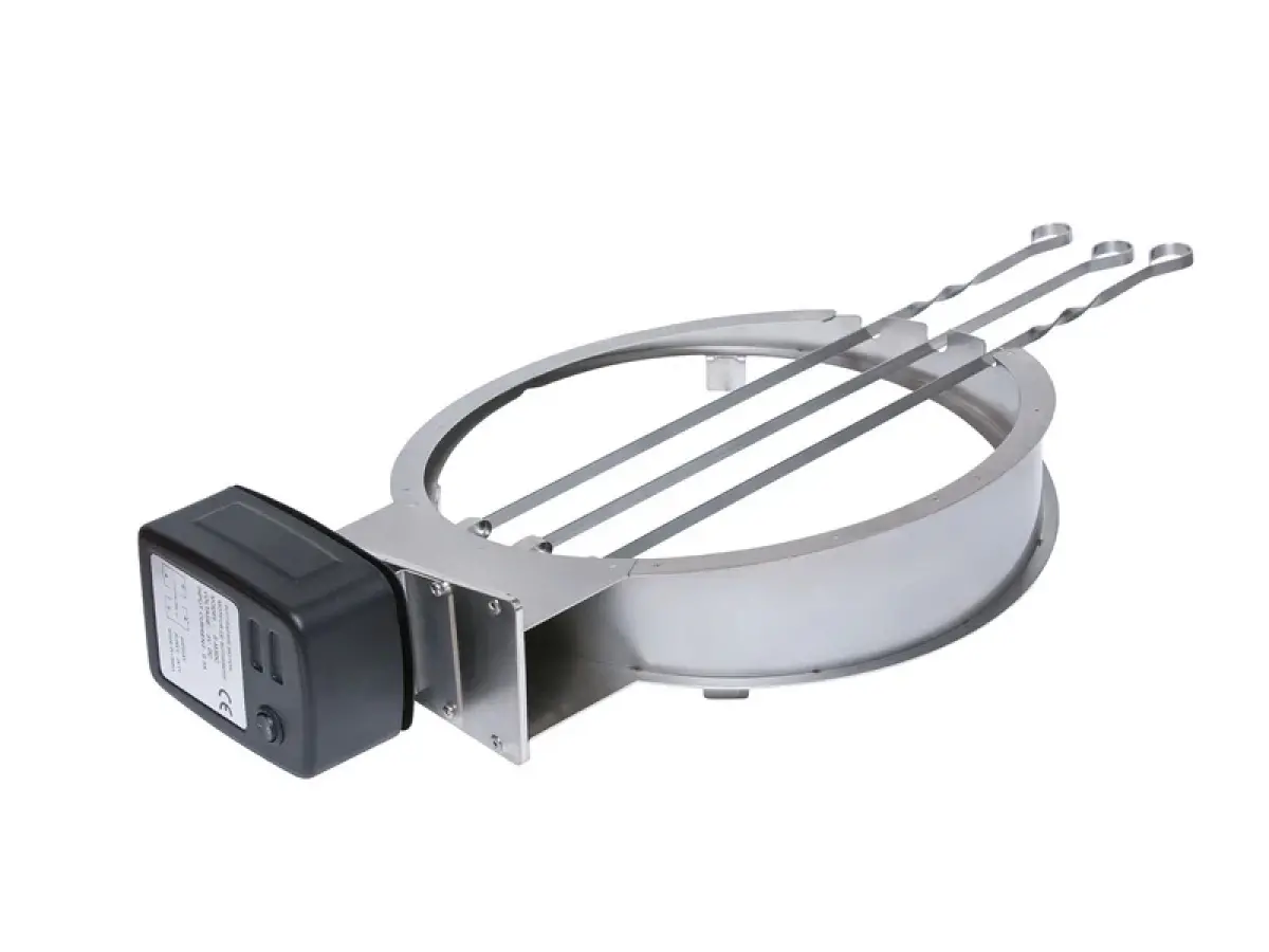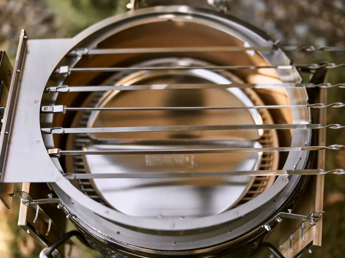 - Potrai arricchire le tue future serate barbecue con deliziosi spiedini direttamente dalla tua griglia. Questo accessorio speciale rende possibile grigliare con girarrosto e coperchio chiuso. In questo modo potrai sfruttare appieno tutto il calore della tua griglia