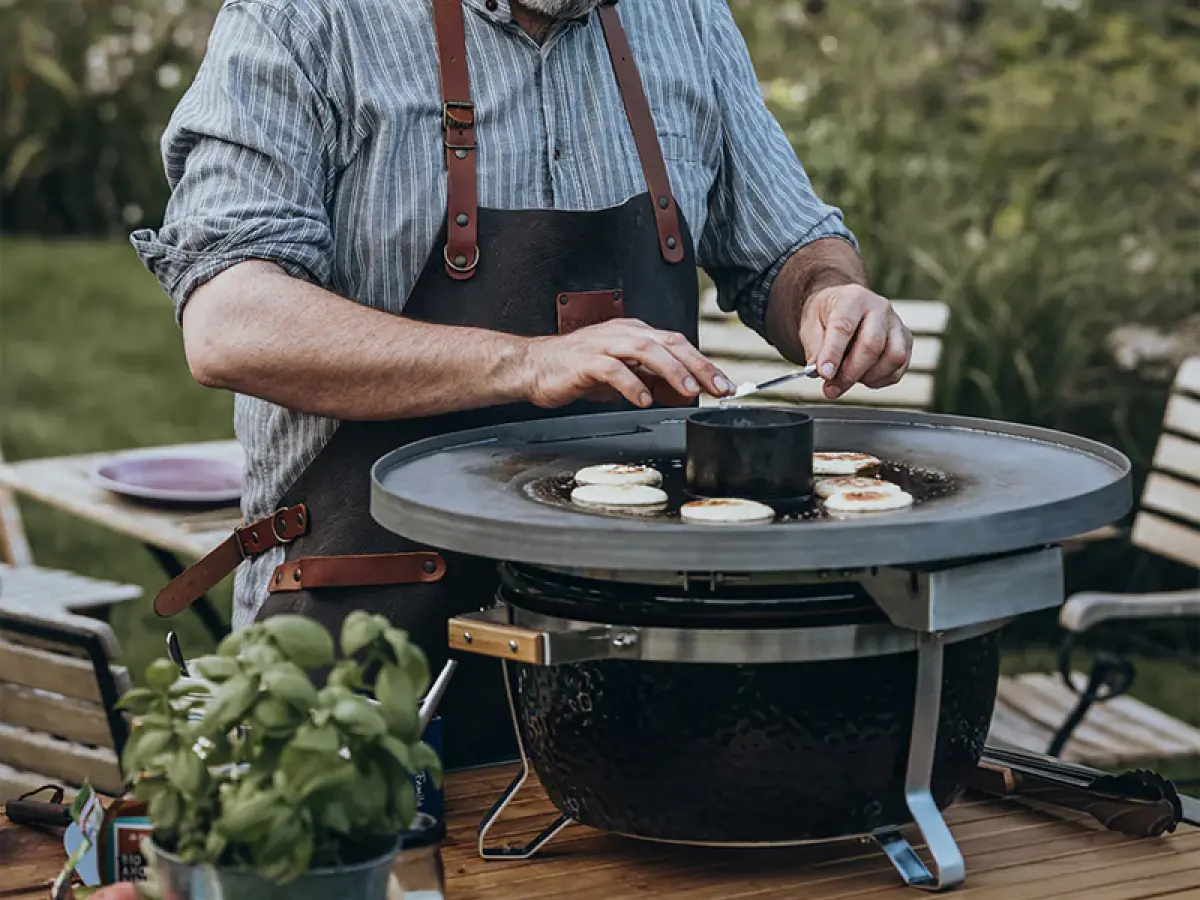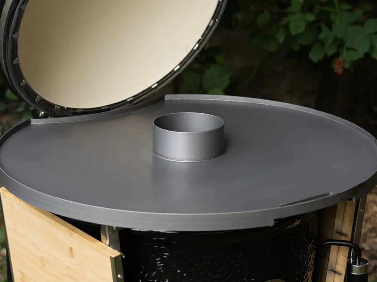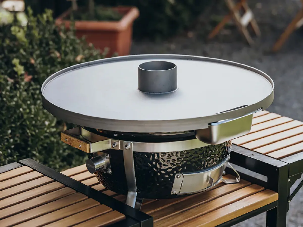 - Amplia il metodo tradizionale di cuocere con il kamado grazie alla plancha: la piastra in solido acciaio, sviluppata per una straordinaria ritenzione del calore