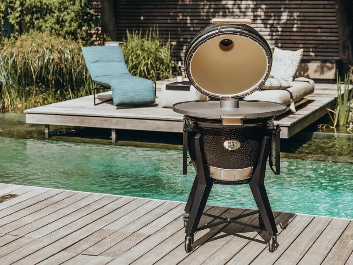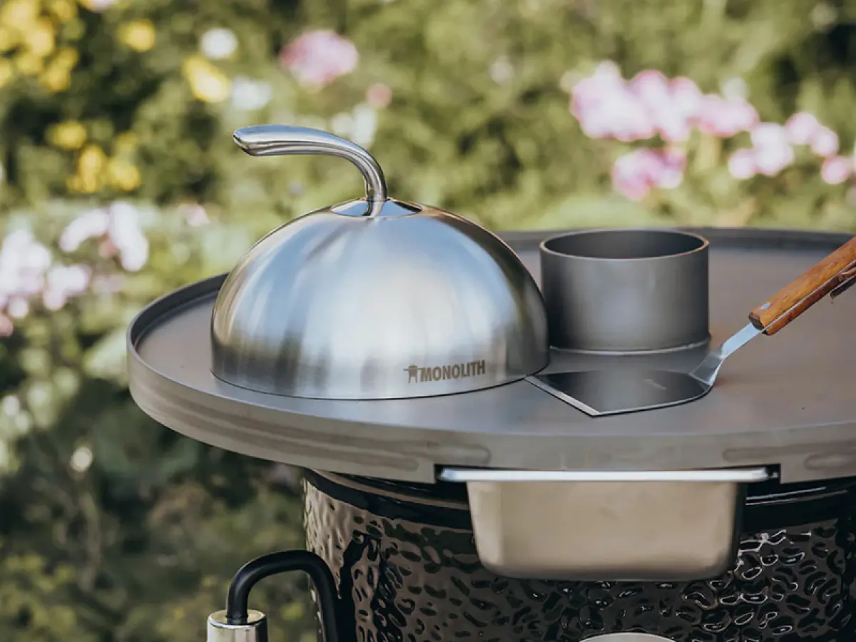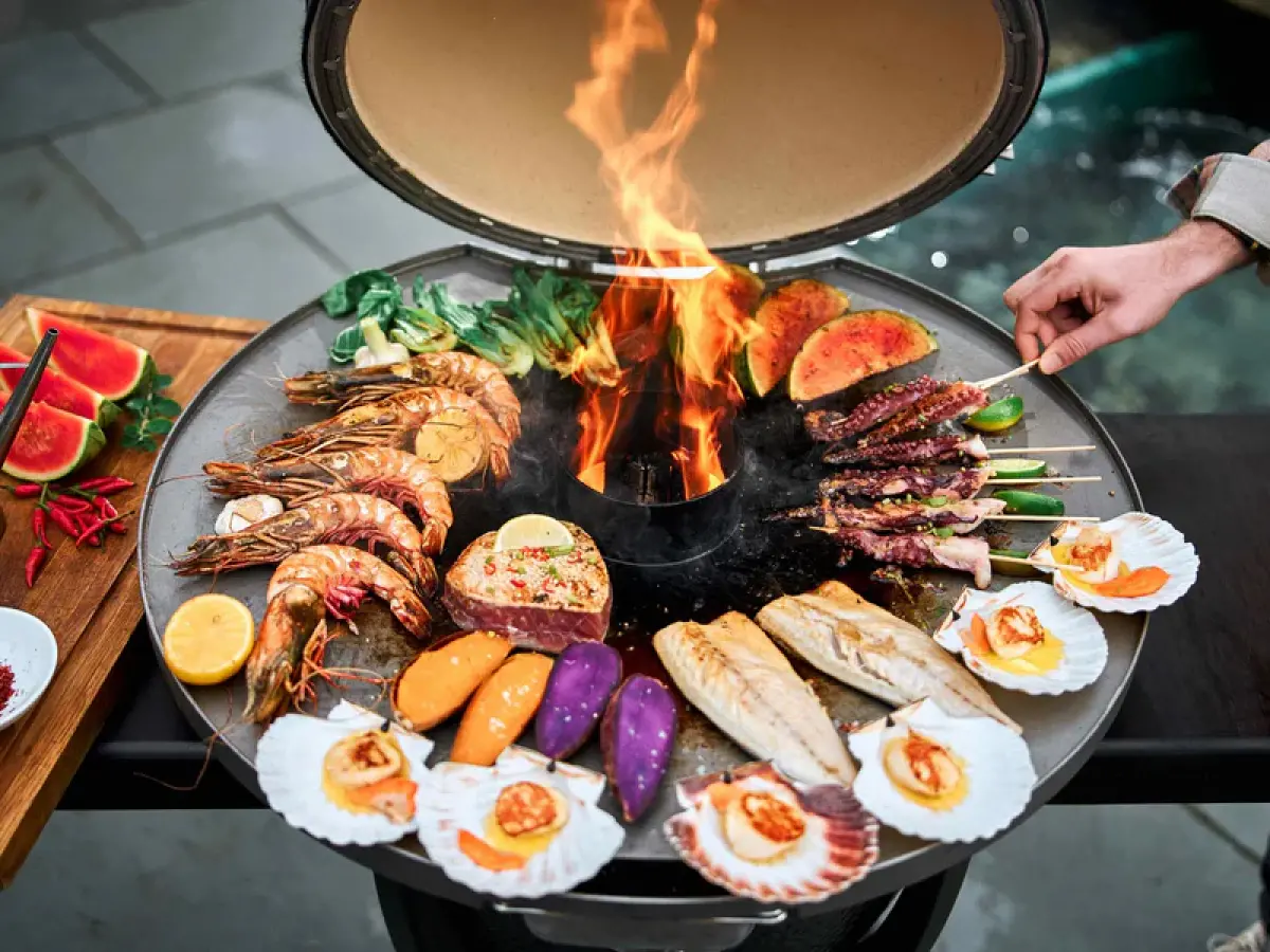 - Amplia il metodo tradizionale di cuocere con il kamado grazie alla plancha: la piastra in solido acciaio, sviluppata per una straordinaria ritenzione del calore
