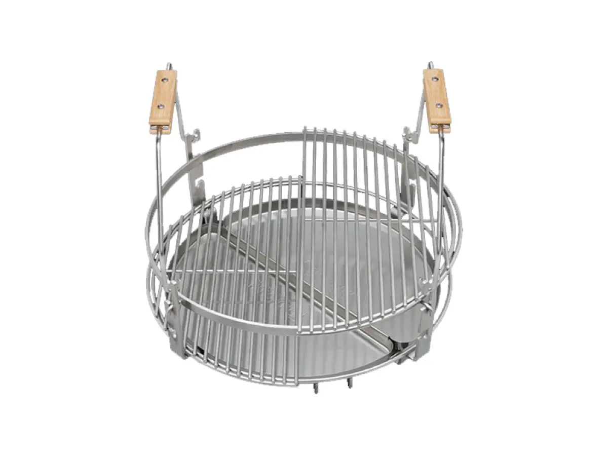 - Questo offre la massima flessibilità nella cottura alla griglia. Con le due forme a mezzaluna, che puoi utilizzare singolarmente o contemporaneamente anche con altezze differenti, puoi realizzare contemporaneamente cottura diretta e indiretta, grazie anche alla pietra deflettore e alle vaschette raccogligocce