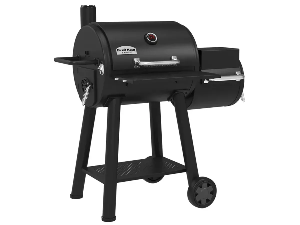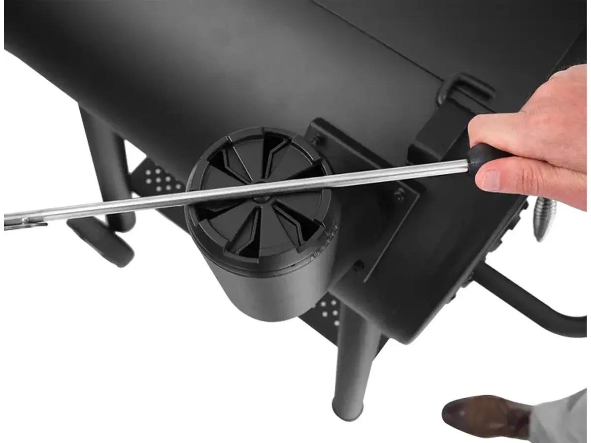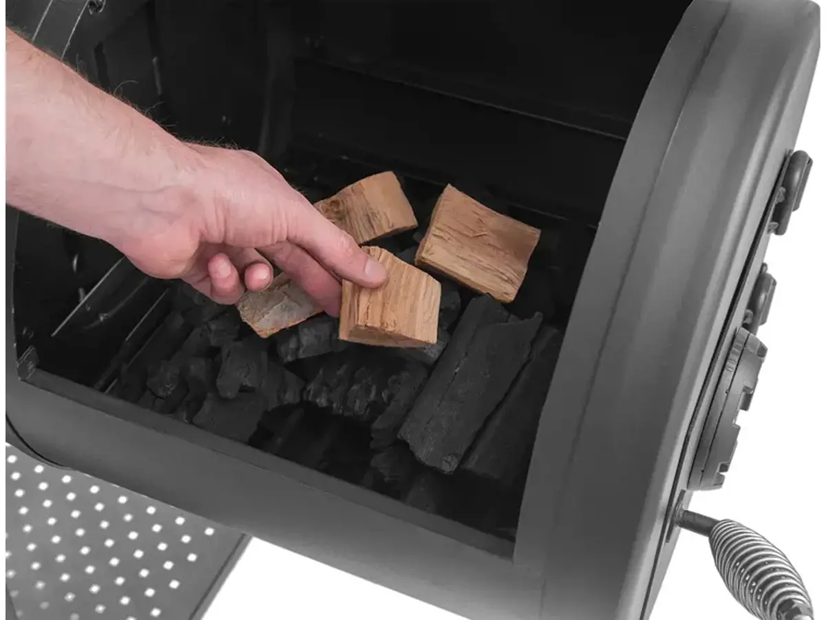- Ispirato agli affumicatori tradizionali degli stati americani del Sud, il barbecue a carbonella con funzione di smoker si presenta estremamente robusto. Le due camere di cottura sono realizzate in acciaio laccato a polvere dello spessore di 2 mm e conservano il calore in modo ideale