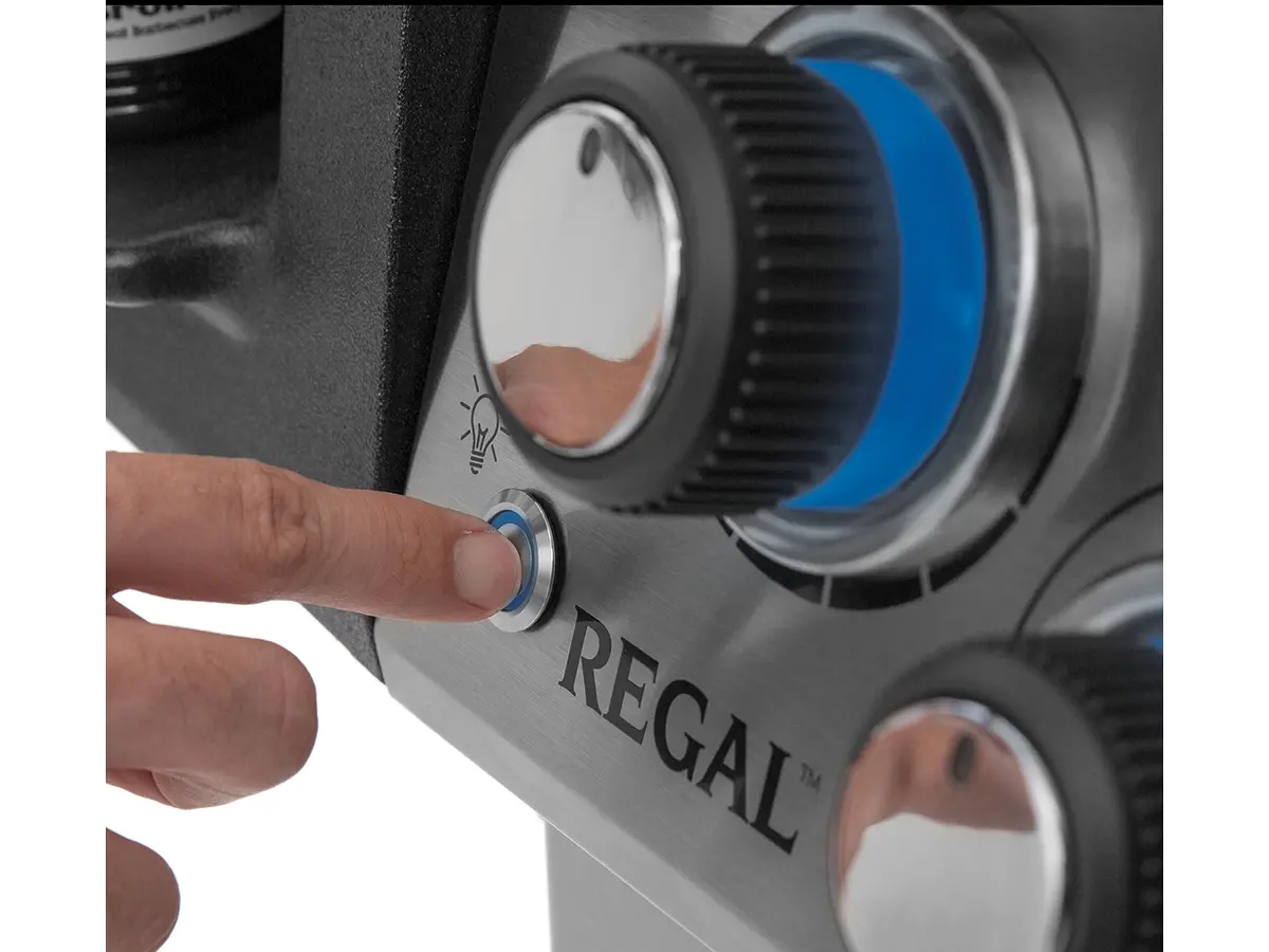 - Barbecue con girarrosto, bruciatore posteriore, fornello laterale e manopole illuminate a LED