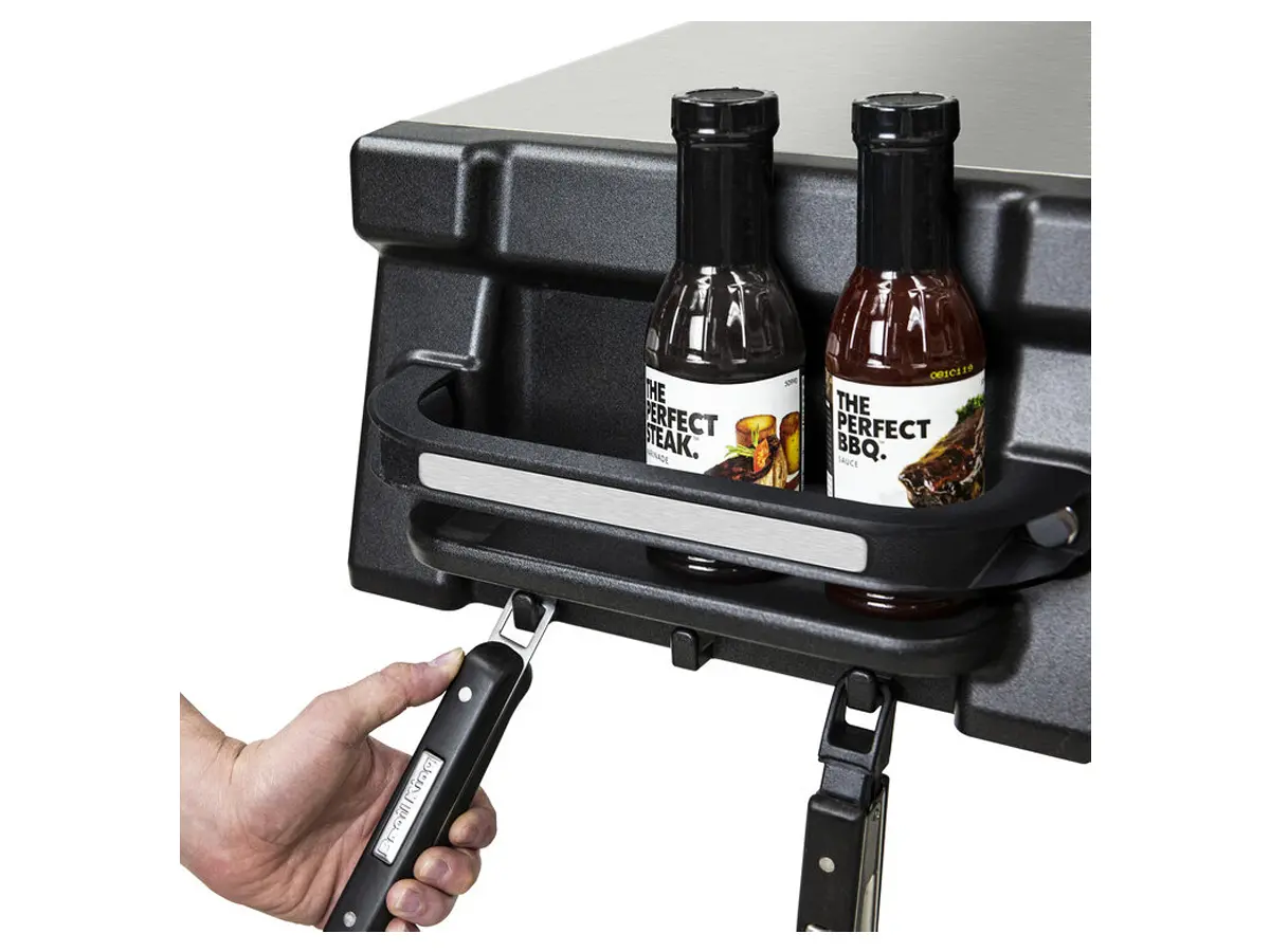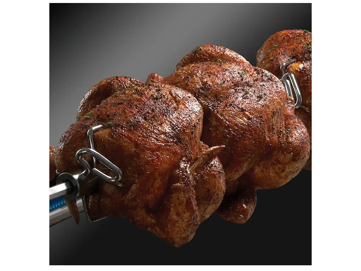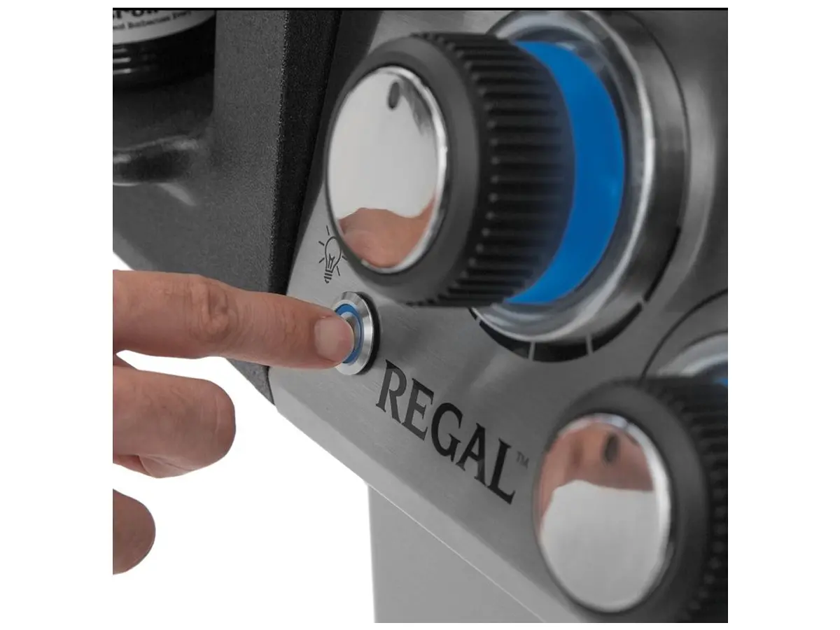 - Barbecue con girarrosto, bruciatore posteriore, fornello laterale e manopole illuminate a LED