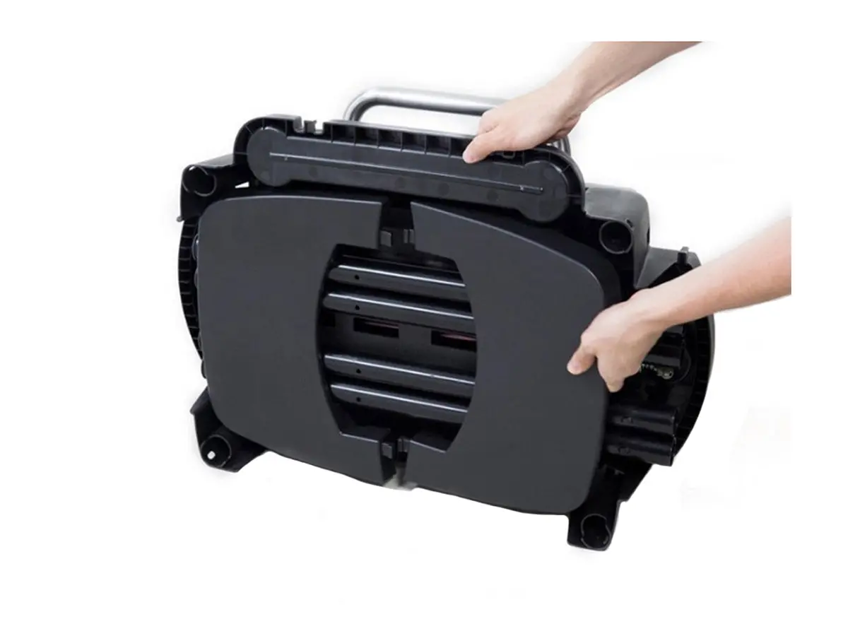 - Ripiani laterali in resina termo resistente e pieghevoli, le gambe possono essere rimosse e posizionate nell’apposita sede per ottimizzare il trasporto e l’alloggiamento.