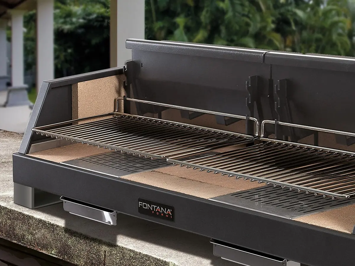 - Grill aperto con braciere super-rinforzato e rivestimento in pietra refrattaria