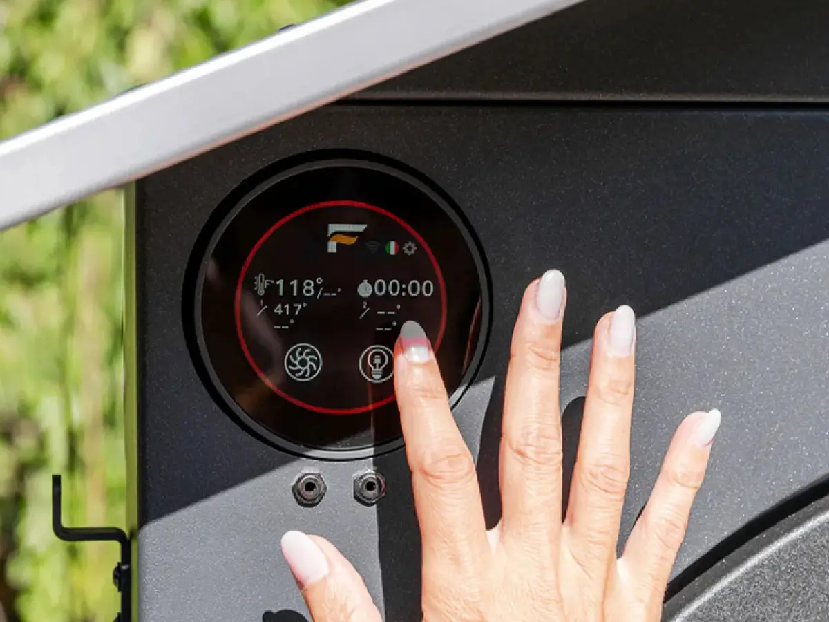 - La vera novità è la gestione digitale: il termometro e il contaminuti analogici lasciano spazio a un display moderno e intuitivo, dal quale è possibile monitorare la temperatura, impostare i tempi di cottura, azionare luce interna e ventola, la quale ha 3 velocità, pensate per adattare la potenza alle diverse dimensioni del forno