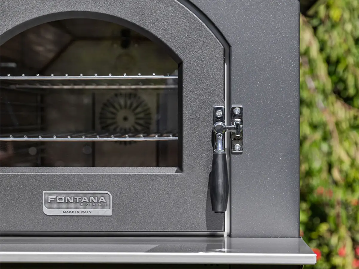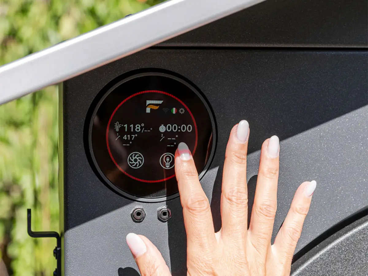 - La vera novità è la gestione digitale: il termometro e il contaminuti analogici lasciano spazio a un display moderno e intuitivo, dal quale è possibile monitorare la temperatura, impostare i tempi di cottura, azionare luce interna e ventola, la quale ha tre velocità, pensate per adattare la potenza alle diverse dimensioni del forno