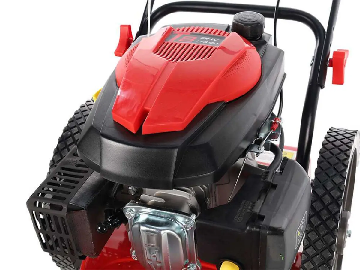 - L’azione di taglio è affidata a un piatto con larghezza di lavoro da 56 cm, che garantisce una resa oraria elevata. Il motore a scoppio Loncin da 173 cc (6 hp) a 4 tempi assicura prestazioni costanti e affidabili