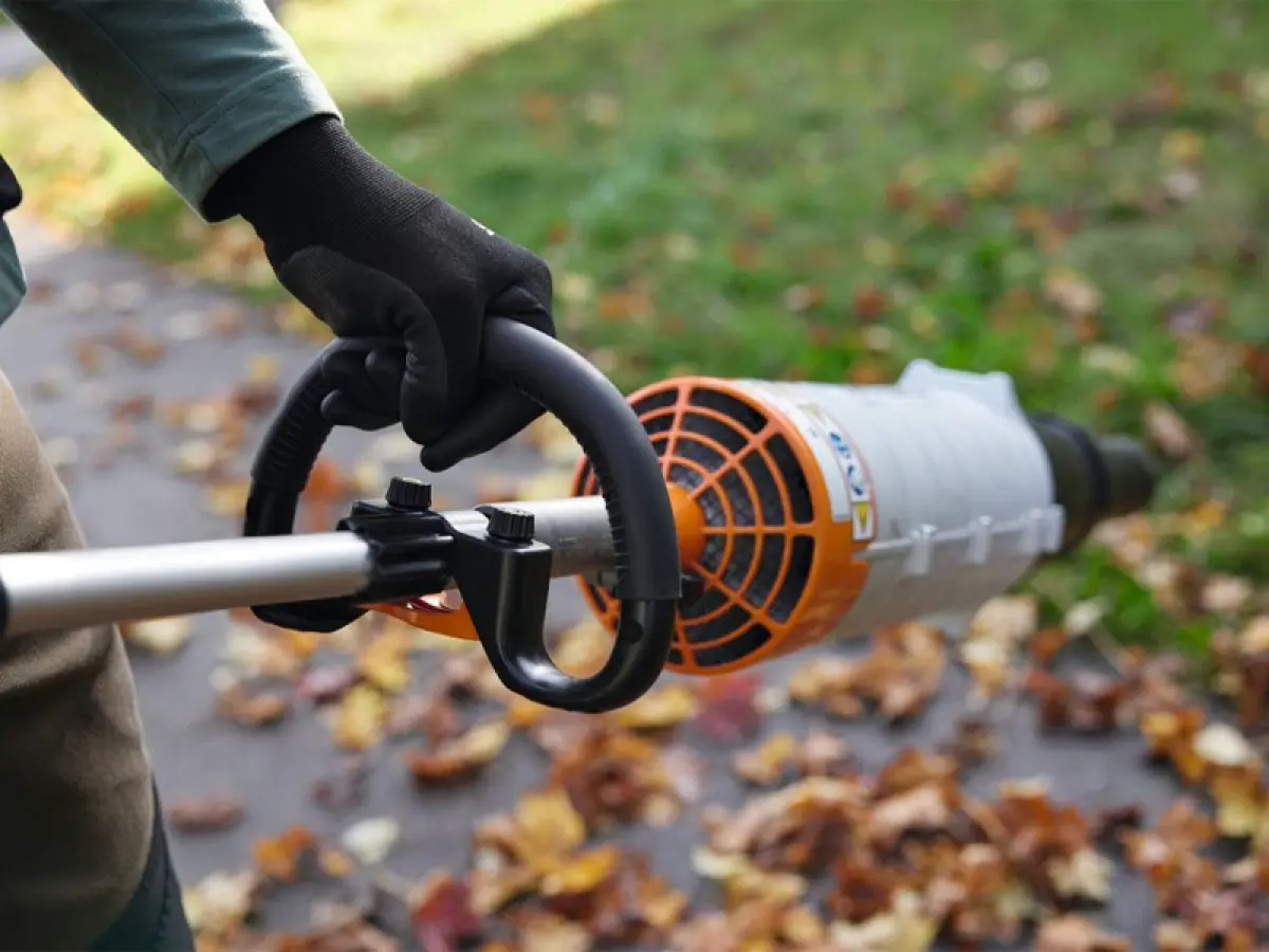 - Con il piede di supporto STIHL opzionale, puoi proteggere la batteria dal contatto con il suolo e avere anche una maniglia aggiuntiva a disposizione