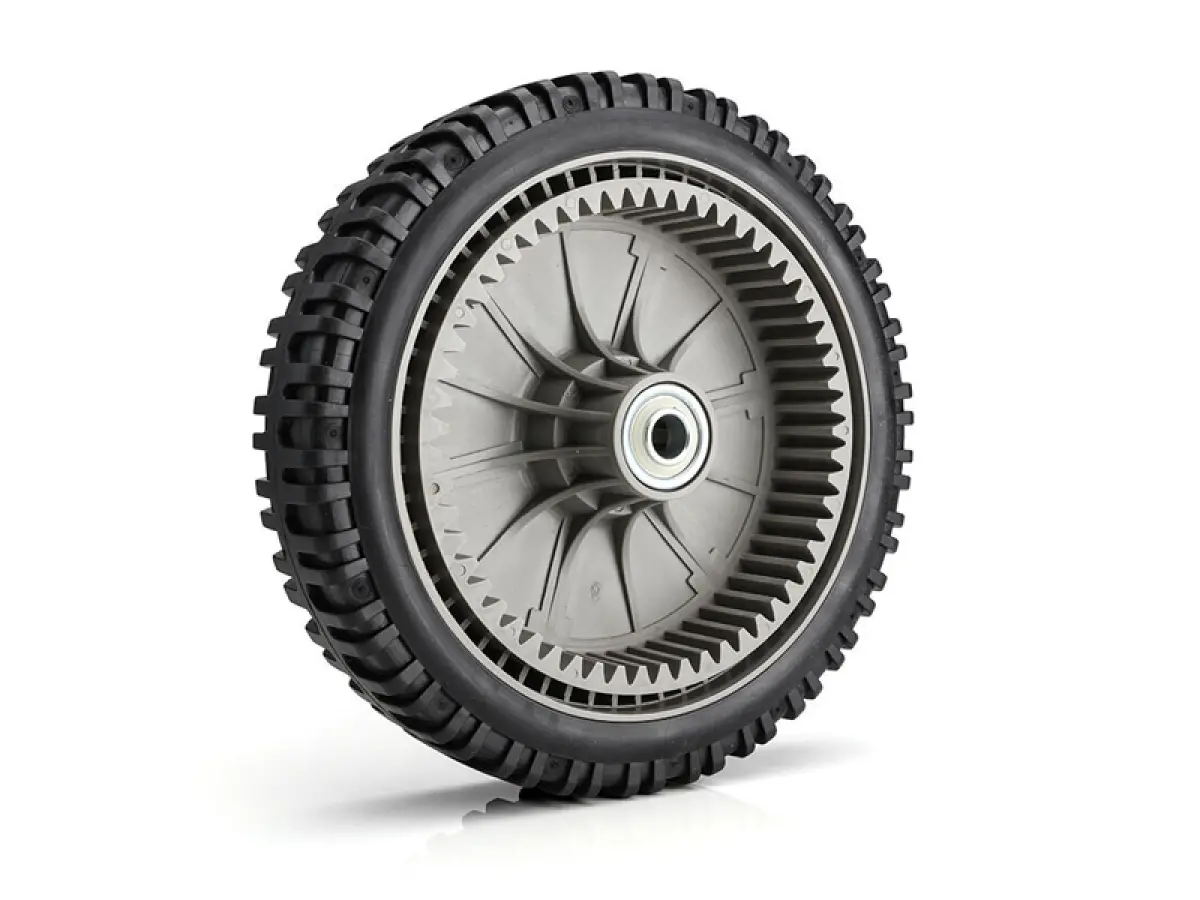 - Le ruote sandwich gommate sono montate su cuscinetti a sfere a doppia faccia, la regolazione centrale dell'altezza di taglio è una cosa ovvia per questo marchio