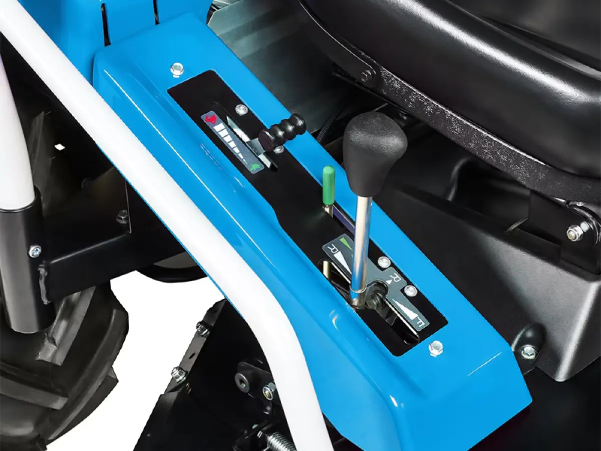 - Frizione elettromagnetica che si attiva agendo sull’interruttore posto a lato del volante, permette di azionare la lama indipendentemente dalla velocità di avanzamento del trattorino solo se l’operatore ne è seduto alla guida (un microinterruttore posto sotto al sedile ne rileva la presenza)