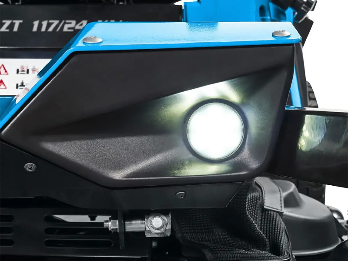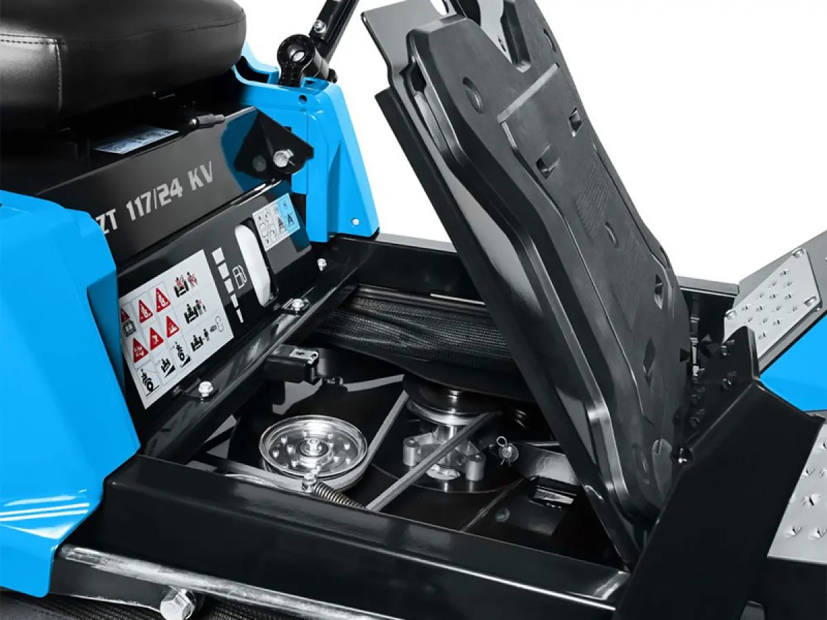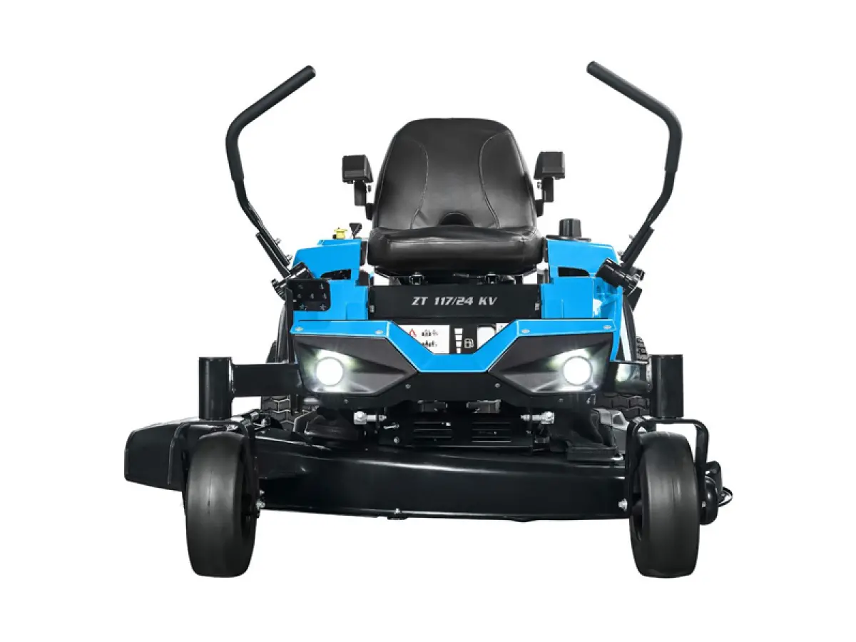 - Caratterizzato da un design moderno e da una robusta scocca in acciaio stampato da 117 cm (46"), il tosaerba a raggio di sterzata zero ZT 117/24 KV è dotato di una coppia di lame mulching e di un potente motore bicilindrico Emak da 708 cc