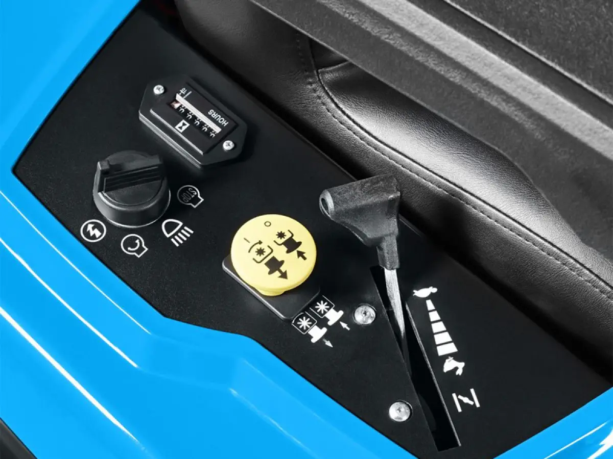 - Gli pneumatici di grande diametro offrono una trazione migliorata e una guida fluida, mentre il sedile regolabile con schienale alto e braccioli garantisce un'esperienza di taglio confortevole