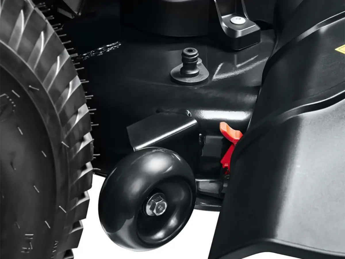 - Il sistema di doppia trasmissione idrostatica offre una manovrabilità reattiva e funzionalità di raggio di sterzata zero che fanno risparmiare tempo, mentre il serbatoio del carburante da 12 litri garantisce un'ampia autonomia di taglio prima di dover fermarsi e fare rifornimento