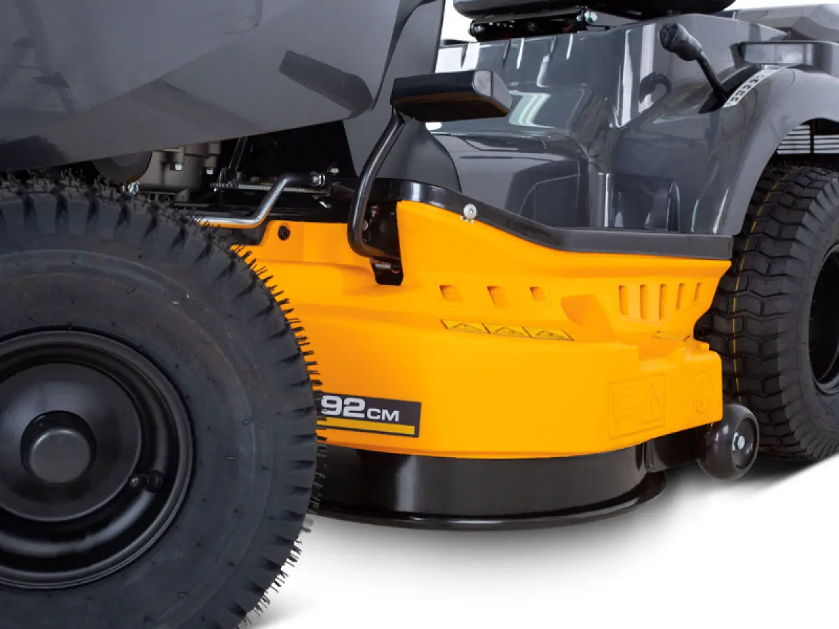 - Con una larghezza di taglio di 92 cm e una tecnologia di taglio precisa, garantisce un taglio uniforme e pulito, anche su terreni irregolari. I comandi ergonomici, il sedile confortevole e l'uso intuitivo rendono il taglio particolarmente piacevole