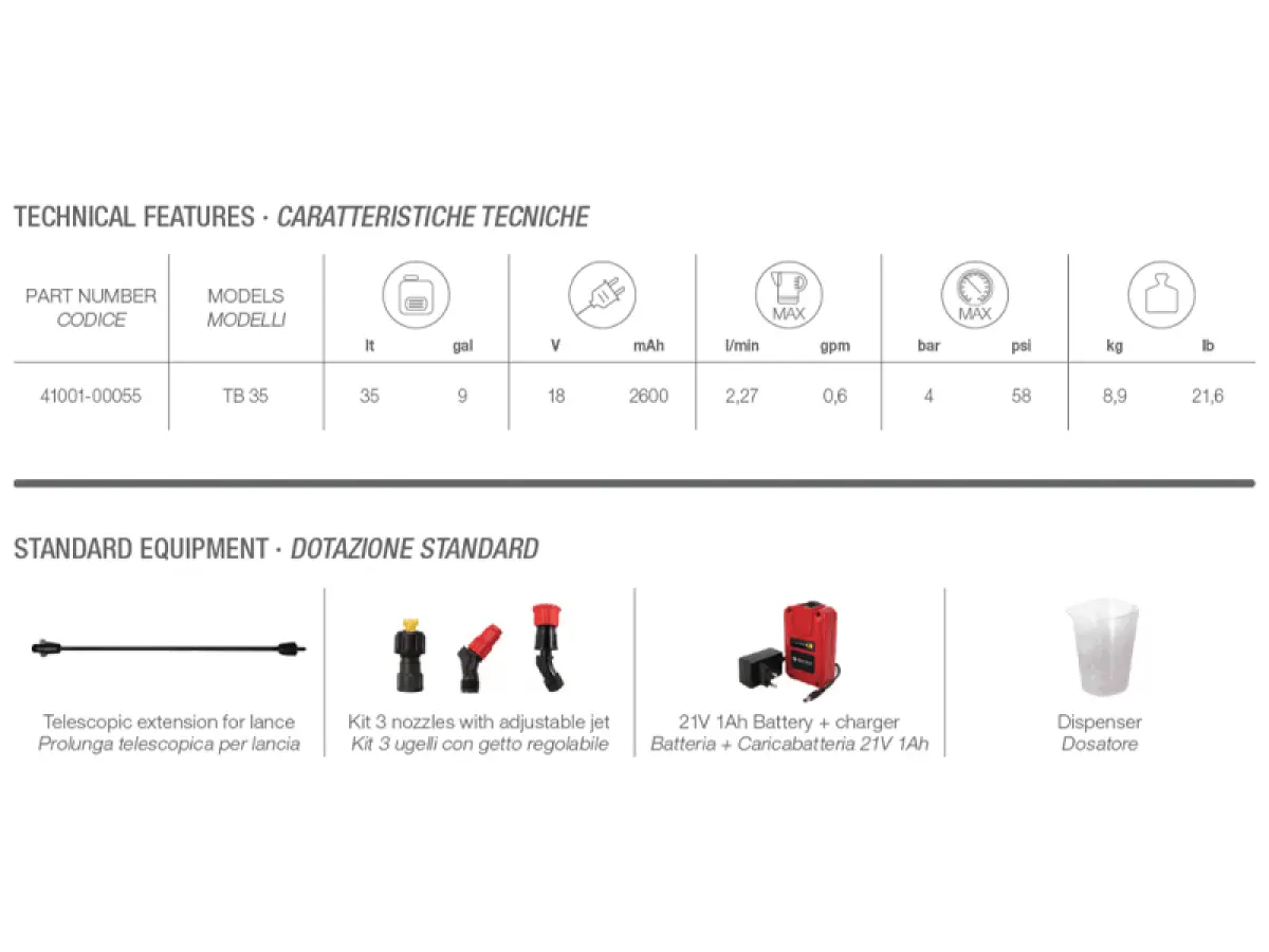 Comet Irroratore carrellato a batteria TB 35