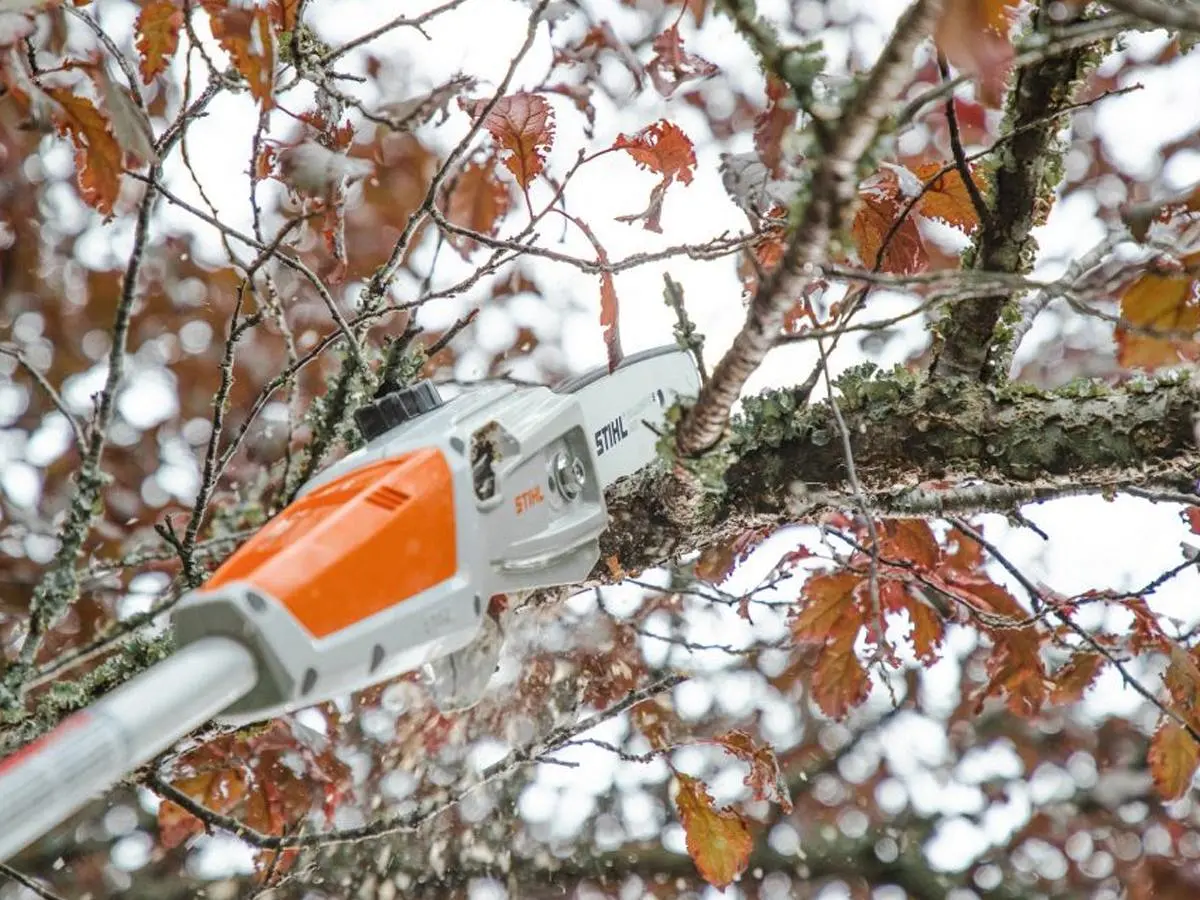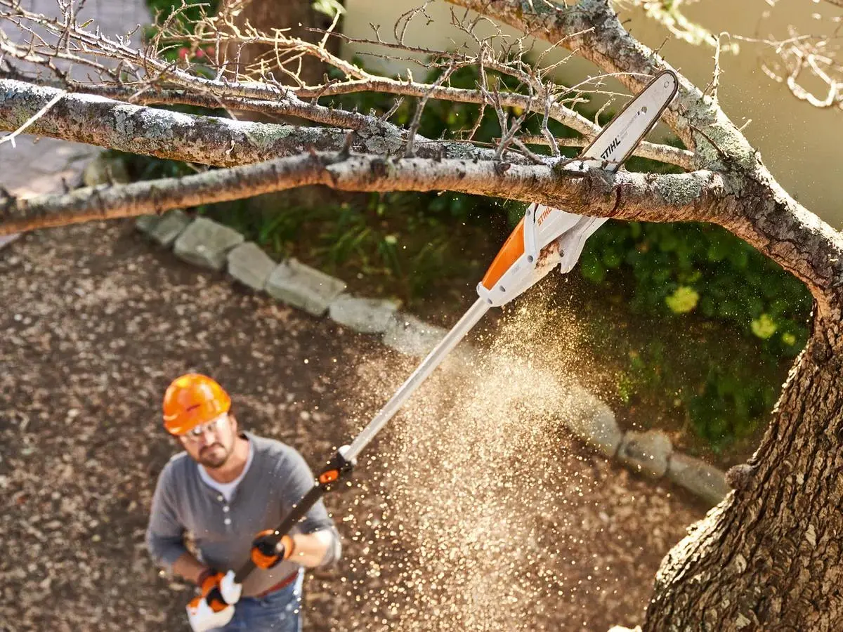 La catena ¼''-PM3 di alta qualità in combinazione con la barra Rollomatic E Mini garantisce prestazioni di taglio ottimali durante la potatura di rami alti