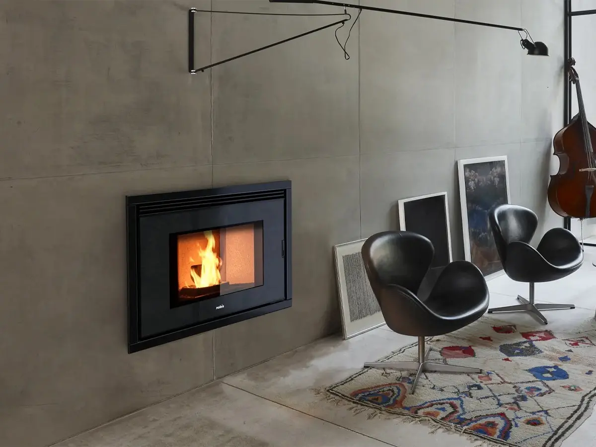 - Inserto a pellet a ventilazione frontale con motore centrifugo 400 m3/h