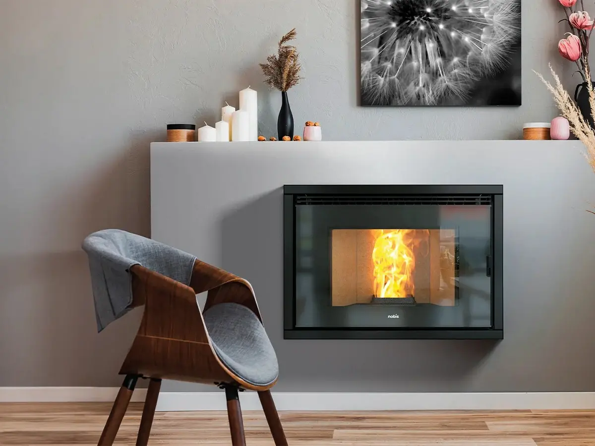- Inserto a pellet a ventilazione frontale con motore centrifugo 400 m3/h