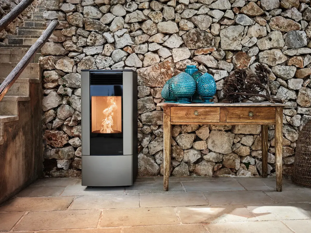 - Stufa a pellet a ventilazione frontale con motore tangenziale 255 m3/h