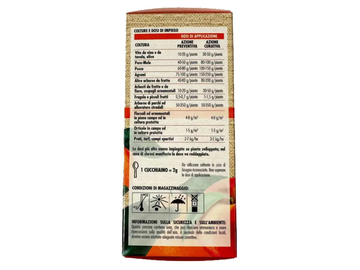 Dosi 4 g/m2 – 1,5 g/vaso da 20 L